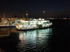 鹿児島市がある薩摩半島側は地続きではないため、フェリーで桜島に渡ります。フェリーは夜中や早朝でも最低1時間に1便は出ているのでとても便利。桜島フェリーは24時間営業ですね。