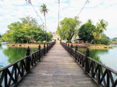 トラパンクワンと呼ばれる池に浮かぶ小島にあるワット・トラパン・グーン。橋を渡って小島へ。